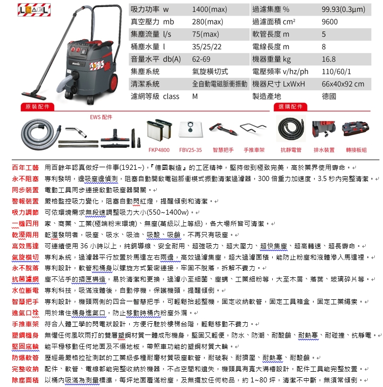 型號:Starmix 德國吸特樂 ISP ARDL-1435 全自動電磁波振塵乾濕吸塵器