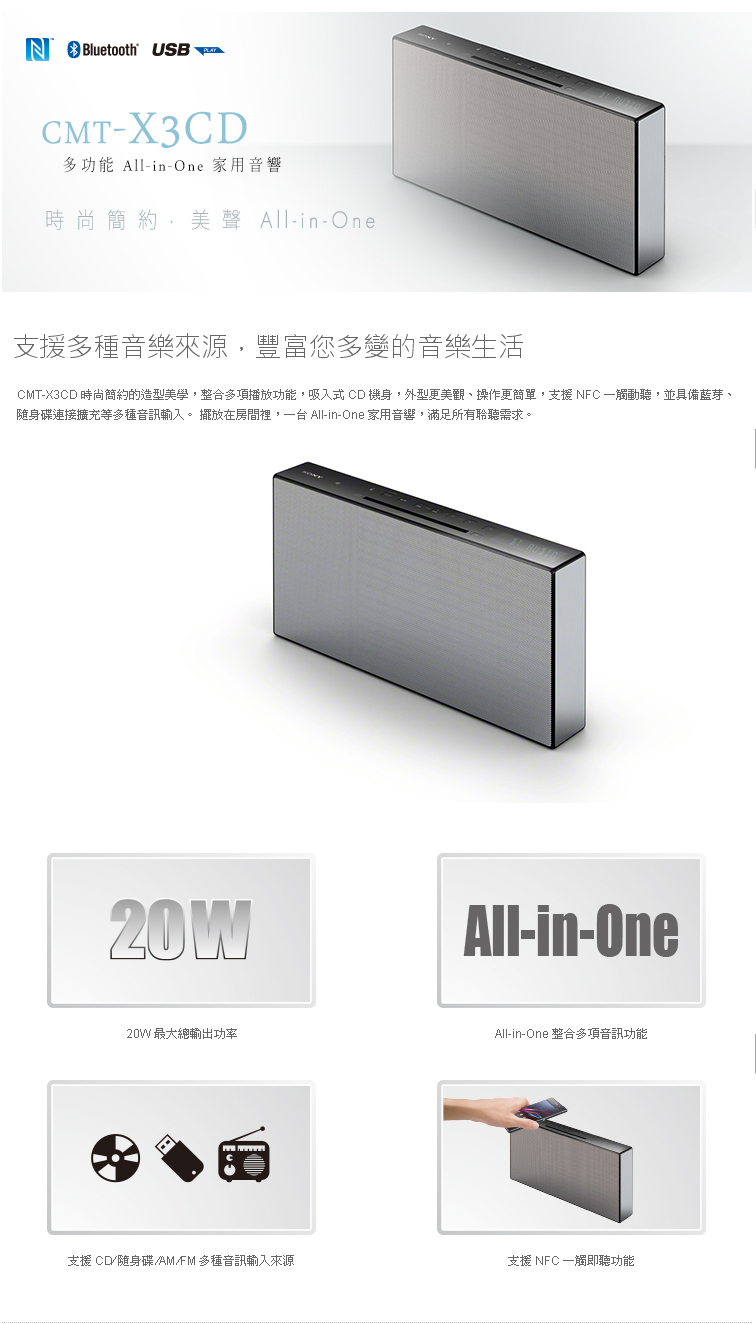 | 專案限量SONY 藍芽床頭音響 CMT-X3CD | ||||||||||||||