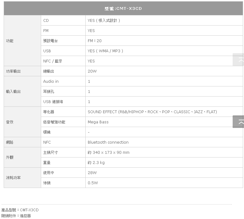 | 型號:SONY 藍芽床頭音響 CMT-X3CD 供貨狀況: | |||||||||||||