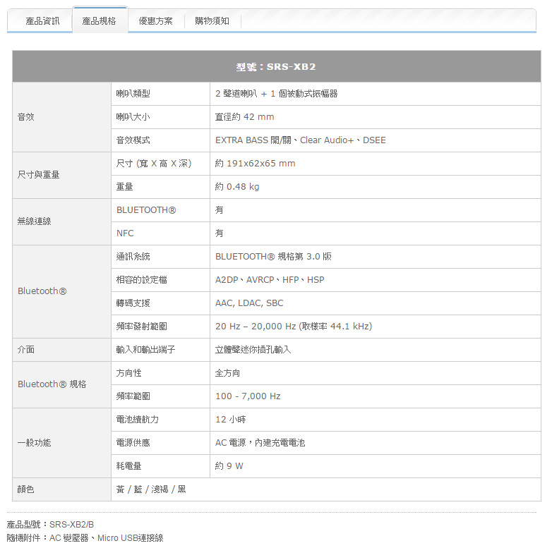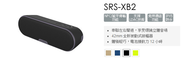 型號:SONY 超重低音藍牙喇叭 SRS-XB2