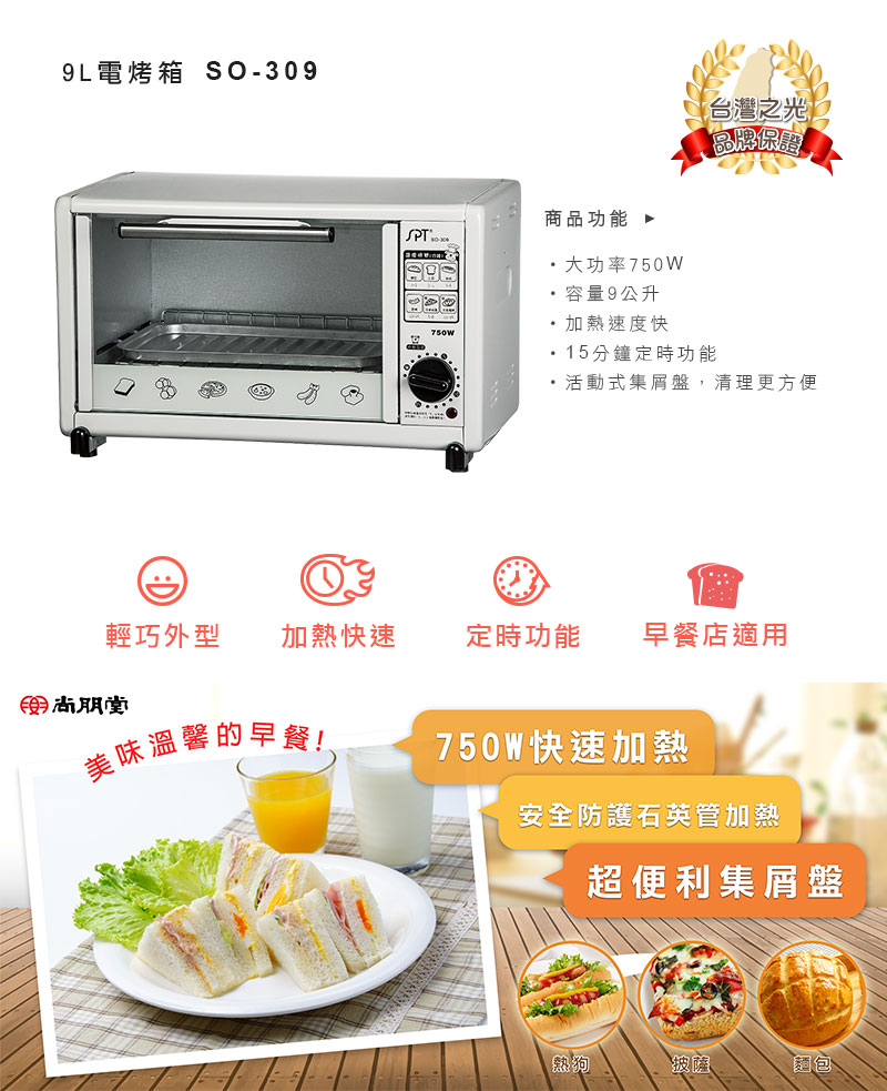 尚朋堂9L電烤箱 SO-309配件:主體、烤盤、說明書/保卡