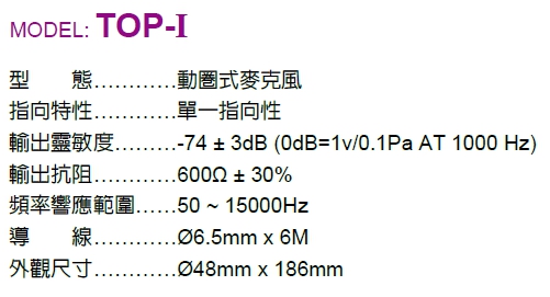 型號:TEV TOP-I 舞台專業用麥克風    供貨狀況: