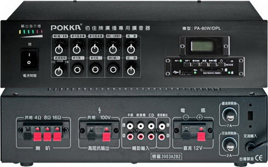 鐘王PA擴音系統-->POKKA 數位化公共廣播擴音器 PA-80W/DPL 商品查詢代碼:QK65753
