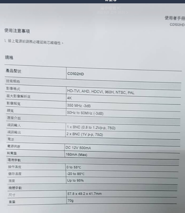 | 專案限量CD102HD CD102HD 高清專用1進2出影像分配器 | ||||||