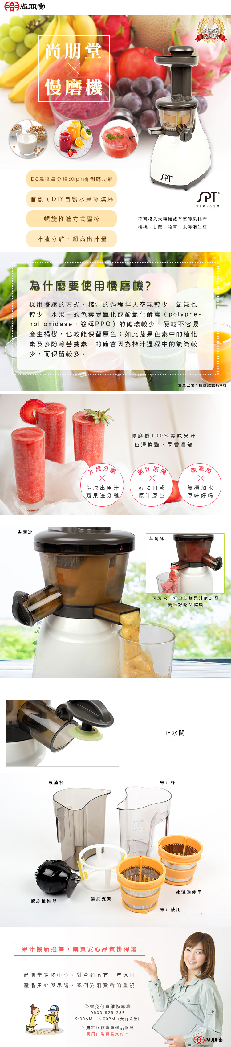 果汁調理機-->尚朋堂慢磨機SJP-010商品查詢代碼:QK65877