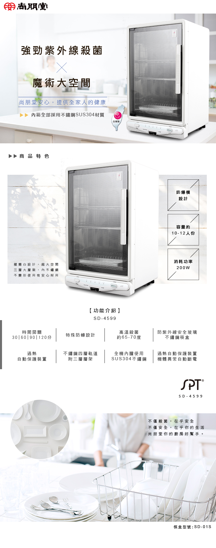 型號:尚朋堂微電腦紫外線四層烘碗機SD-4599