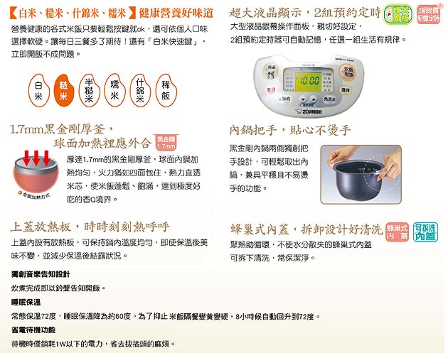 型號:象印6人份黑金剛微電腦電子鍋(NS-ZDF10)