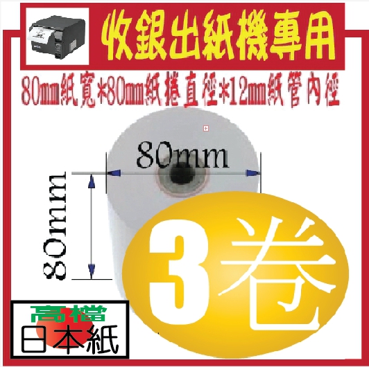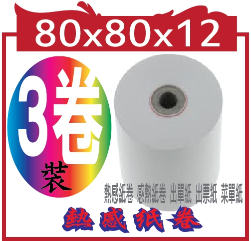 專案限量商業結帳機用....POS熱感應紙捲 80x80x12... 熱感紙卷 感熱紙卷 出單紙 出票紙 菜單紙 (不含雙酚A成份)@3卷超值組合黑色包裝帶共3卷 3卷裝
