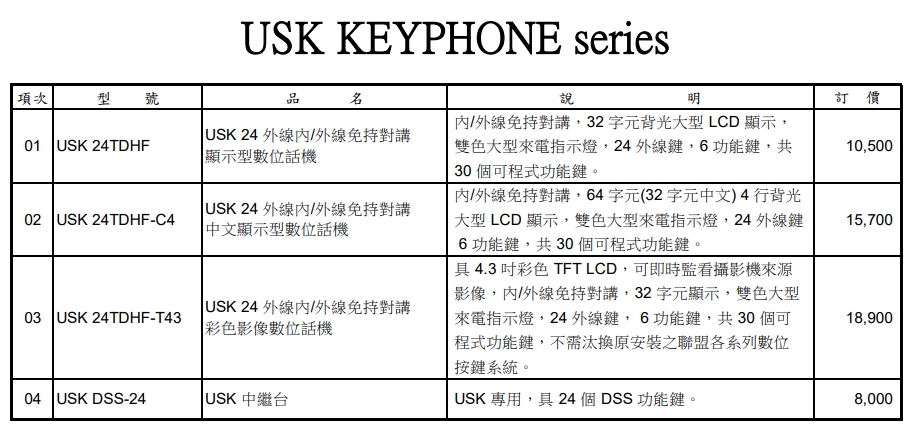 : ISDK系列數位功能話機--> USK 24TDHF商品查詢代碼:QK66288