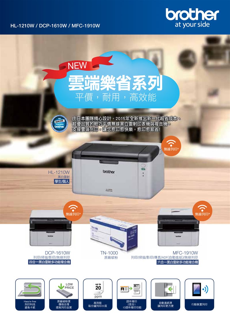 | 專案限量BROTHER DCP-1610W 無線雷射複合機 | ||||||||||||