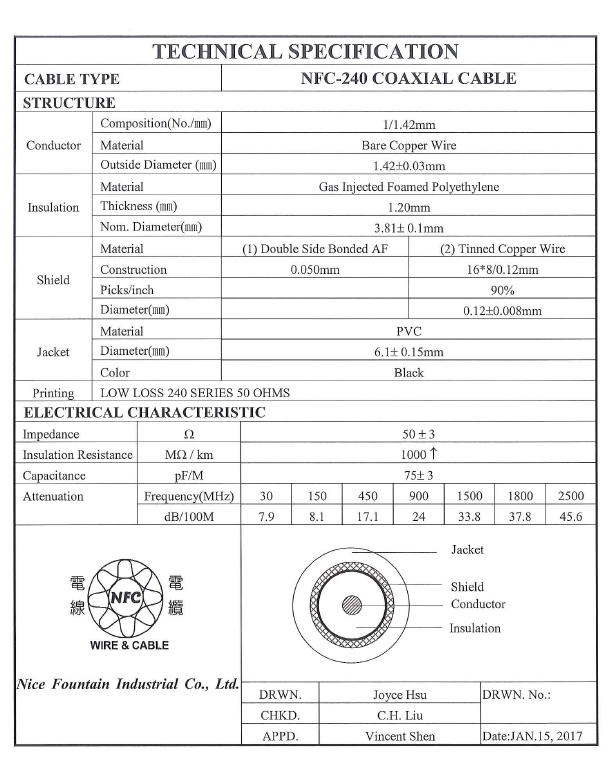 線材-->台灣一級廠 同軸 電纜 同軸電纜NFC-240 CABLE 200M 商品查詢代碼:QK67081