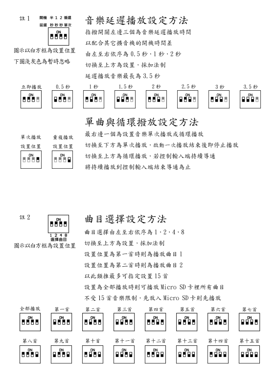 ♦ 內建7首音樂,可切換15首音樂及15音樂循環撥放(觸發播放下一首)功能
