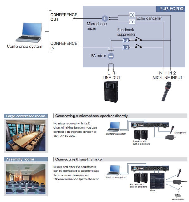 產YAMAHA PJP-EC200 是整合大型會議室專門設計給視訊會議與web視訊會議用的專業回音消除系統