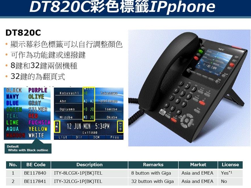 : SV8000數位IP通訊系統-->NEC DT820C IP Desktop Telephones商品查詢代碼:QK67155