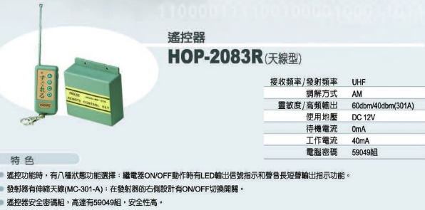 HOP-2083R 遙控繼電器全台最低價0910090333