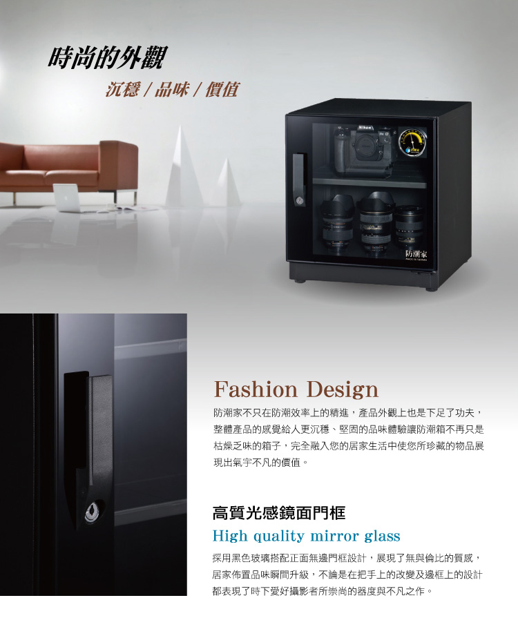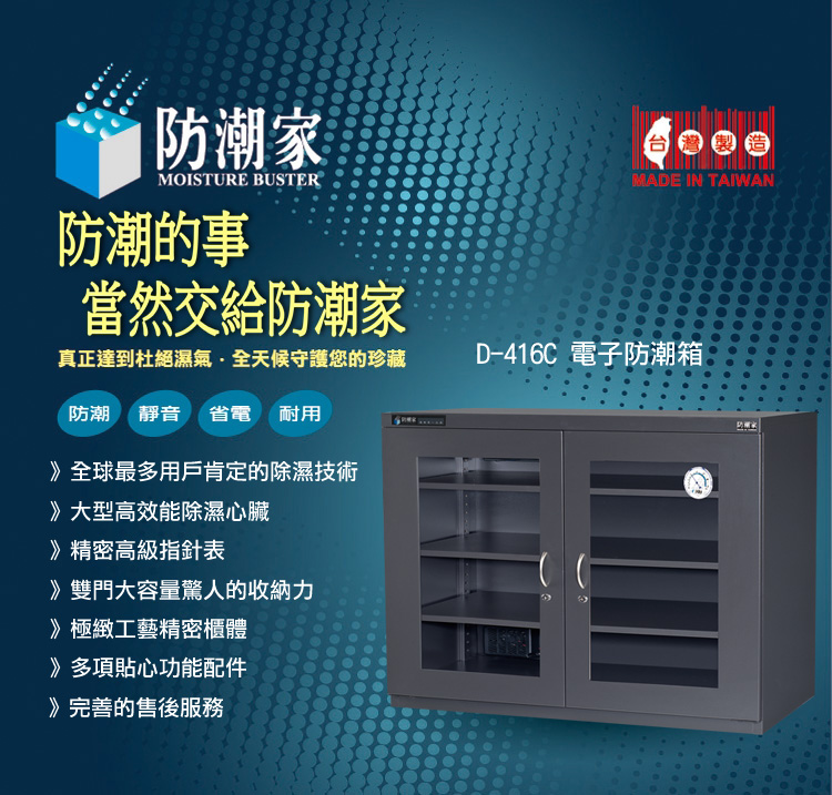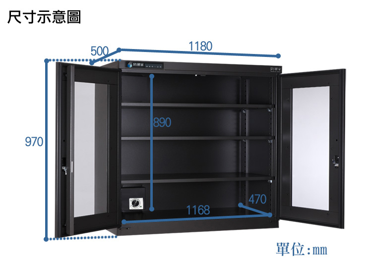 .防潮箱箱體採精選中鋼特級、強化鋼板精密結構氣密設、特級烤漆、 3mm強化玻璃、無磁害氣密門墊、精緻把手及安全鎖。