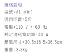 型號:【Opure 臻淨】A1 高效抗敏HEPA負離子空氣清淨機(
