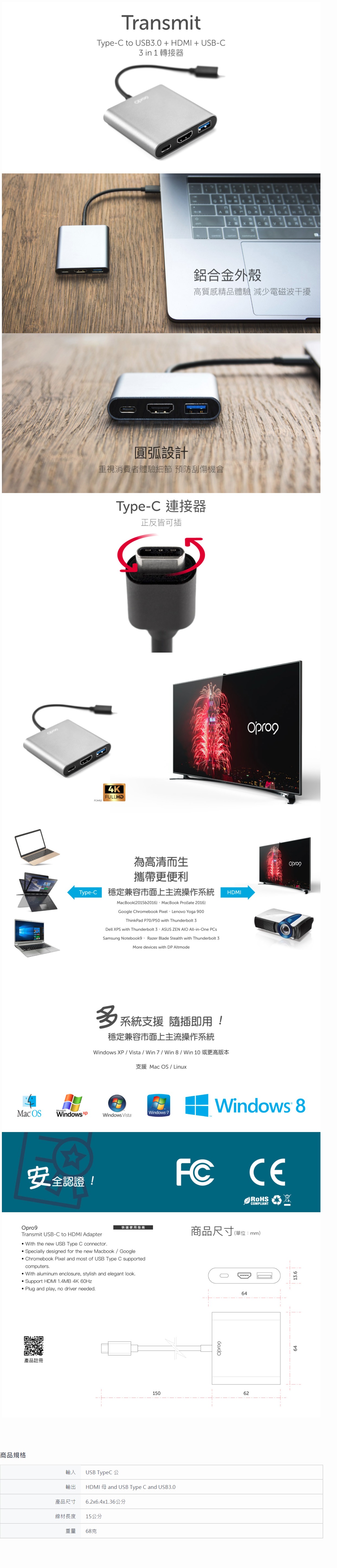 型號:Opro9 USB-C轉HDMI/USB-C/USB3.0轉接器