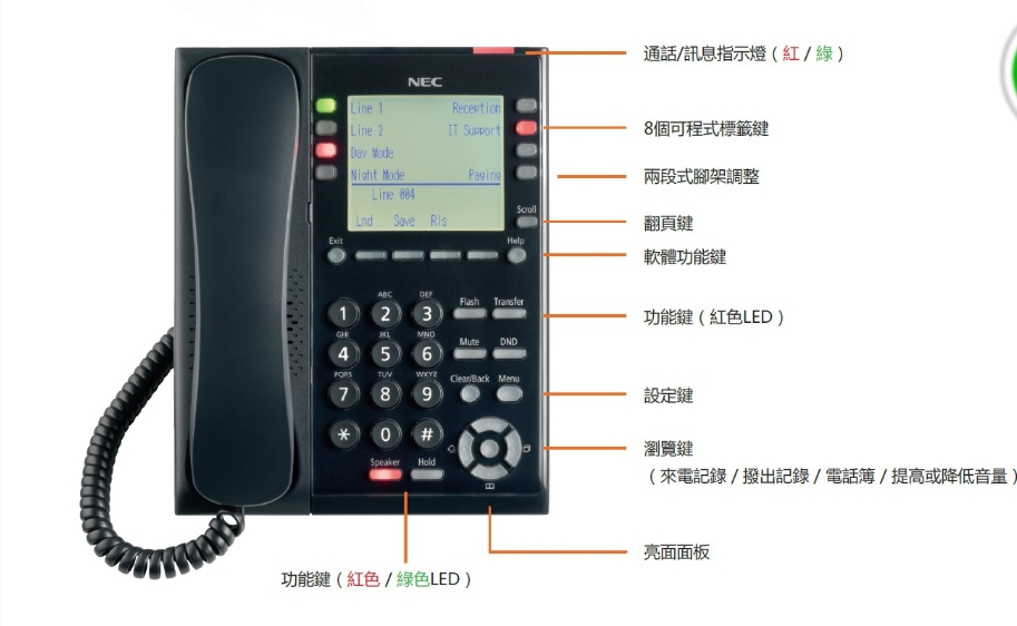 專案限量8IPLD智慧型通訊伺服器 SL2100 NEC SL2100 8鍵大螢幕IP話機 IP7WW-8IPLD-C1 BY ODER