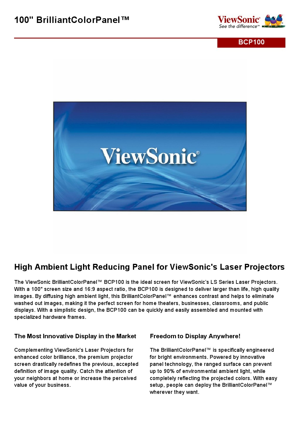 LCVSBCP100 ViewSonic 100" BrilliantC ( BCP100 ) 0iewSonic 100" BrilliantC ( BCP100 )