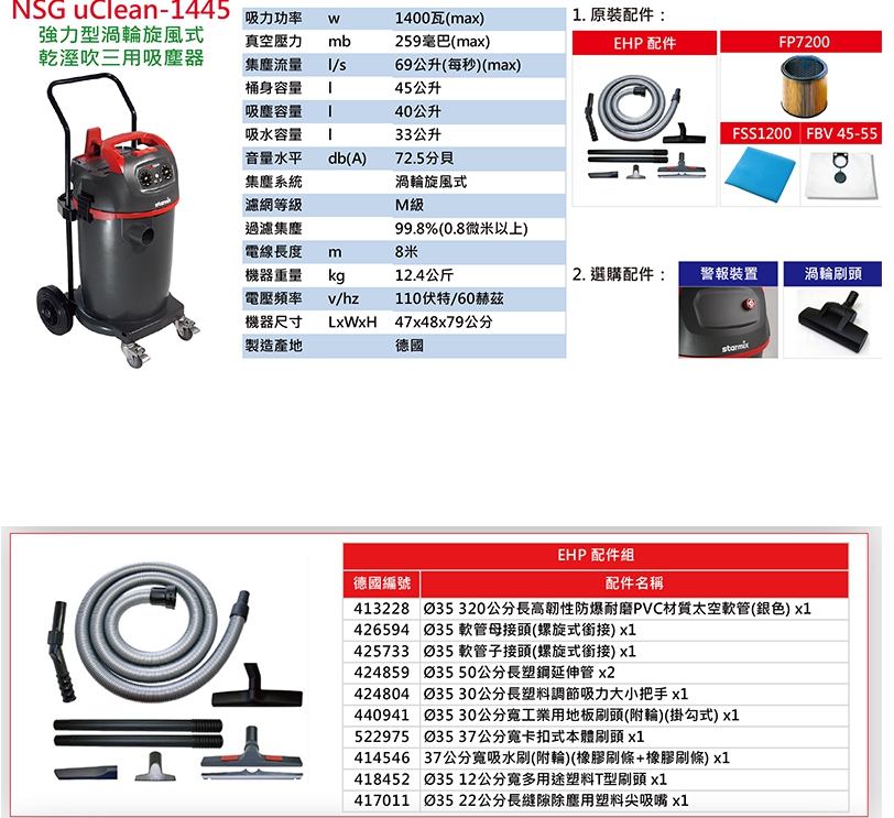 型號:Starmix 德國吸特樂 NSG uClean 1445 *