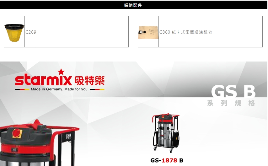 德國Starmix吸特樂-->GS-1878 B *無線型 電瓶式 三顆馬達 *渦輪旋風式馬達商品查詢代碼:QK75723