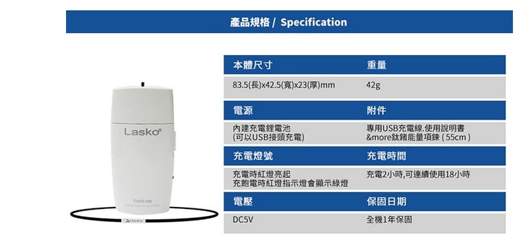 Lasko美國 Fresh me 穿戴式空氣清淨機 AP-001商品規格: