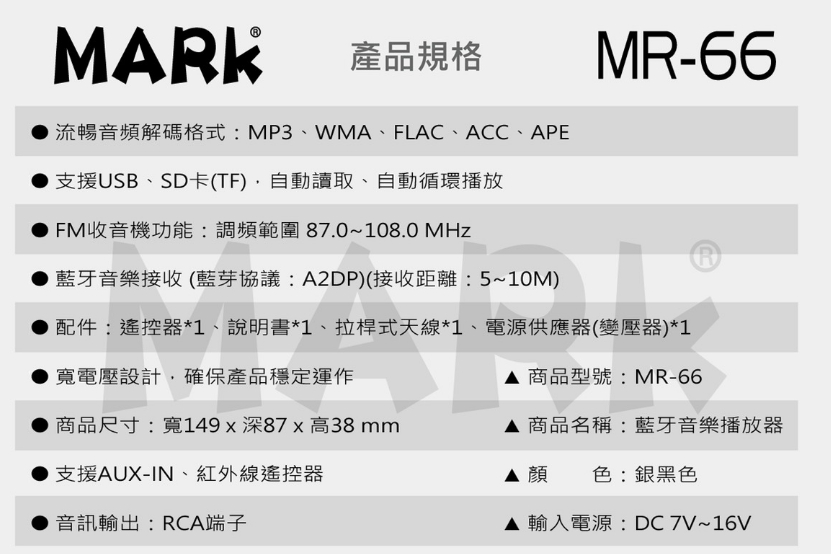 MARk全新上市 多媒體音樂播放器 MR-66