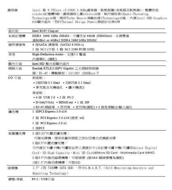 商用電腦ESC500G4/i5-7500/8G*1/1TB/CRD/DVDRW/300W/WIN10 PRO/3-3-3