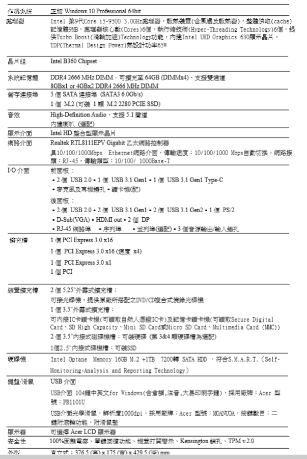 .作業系統:Windows 10 Pro 中文專業版64bit