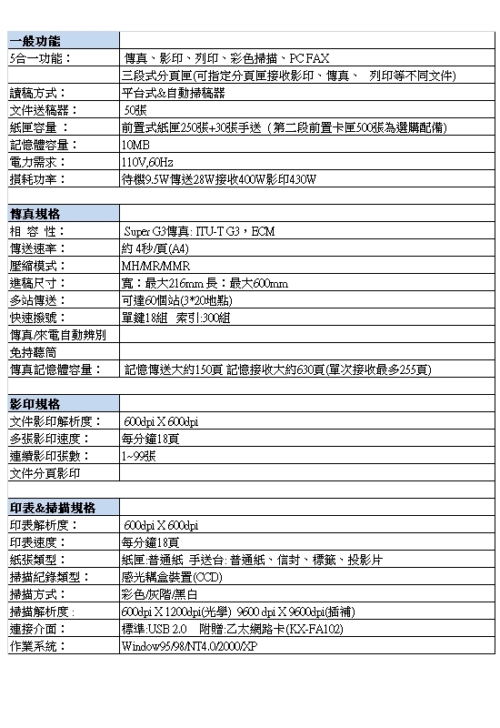 .傳真速度:約4秒/頁*1
