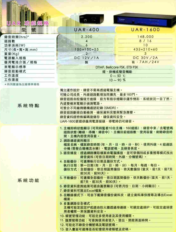 型號:UAR-1600-16 數位錄音系統 16迴路