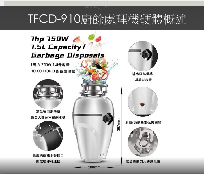 °ª«~½è°¨¹F- HOKO HOKO TFCD-910¼p¾l³B²z¾÷±Ä¥Î¤F³Ì·s¼w°ê§Þ³N¡A°t³Æ 1°¨¤O (750W) °ª³tª½¬y¹q¾÷¡AÂà³t¬°3500 RPM¡A¥i§Ö³t¨Ã¥i¾a¦a¬ã¿i°íµwªº¹ª«´Ý´í¡CTFCD-910§ó¨ã¦³¤T¼h¥þ±K«Ê°¾¸¤Î§Ü¾_³]p¡A¹B§@®É¦wÀR§C¾_°Ê¡C