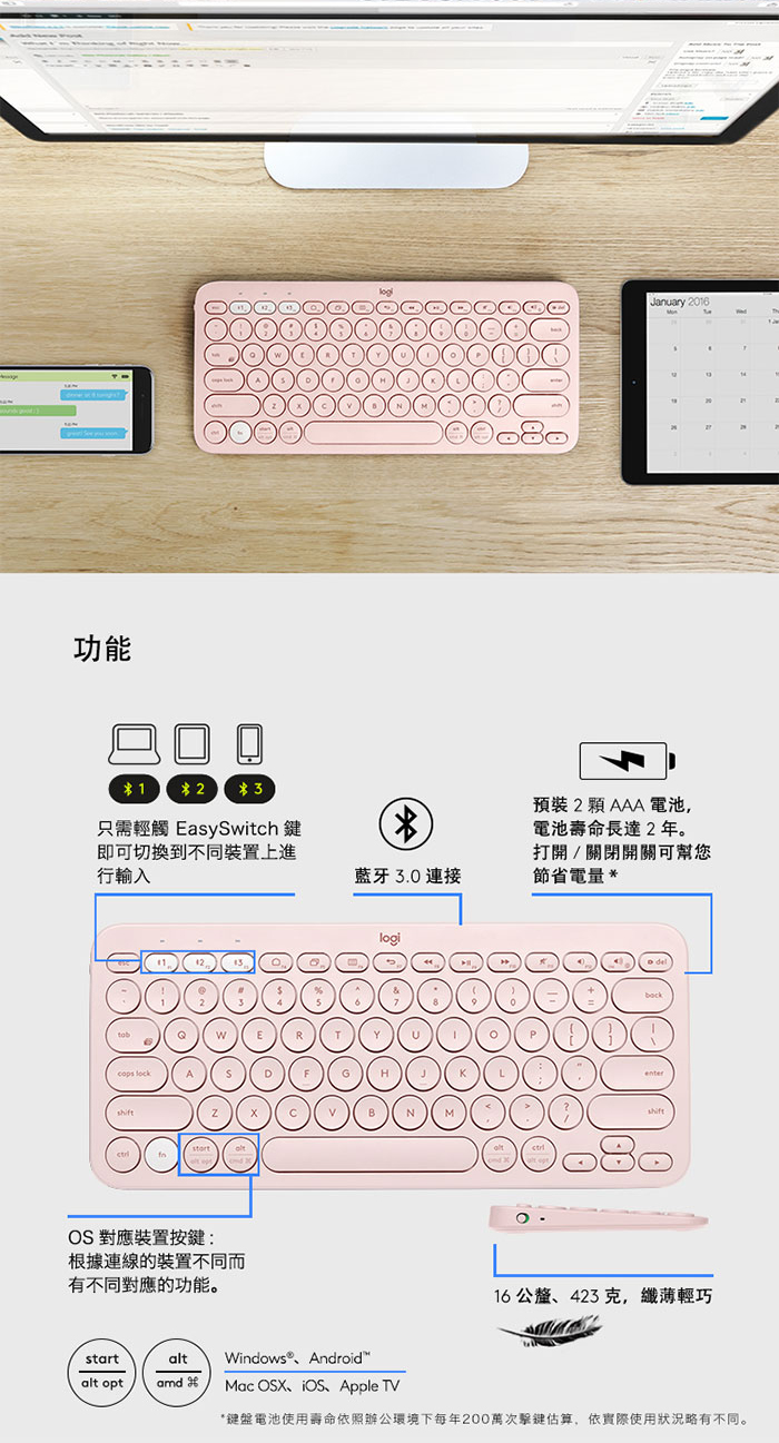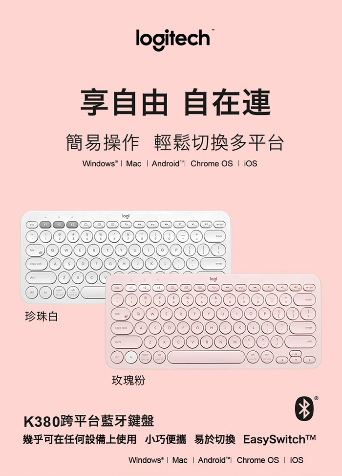 型號:羅技 K380-玫瑰粉 跨平台藍芽鍵盤
