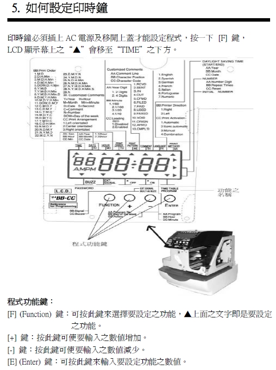 F.預設文字,月可選擇英文,西班牙文,德文,法文,義大利文,葡萄牙文