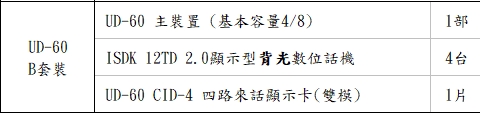 UD-60-->聯盟總機UD-60 B套裝商品查詢代碼:QK82610