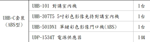 UHB-C套裝 (ABS型)UHB-C套裝 (ABS型) UHB-101 對講室內機 1台