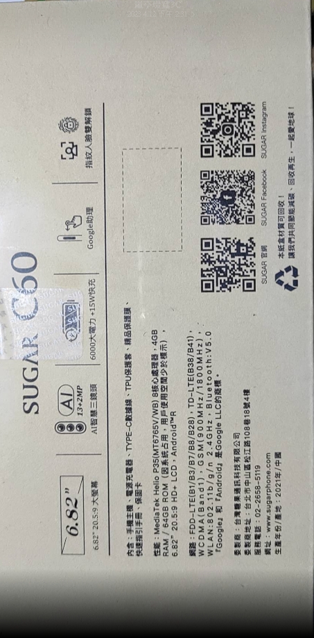 HUAWEI手機-->【送原廠JY-AW30無線充行動電源】SUGAR C60 (4G/64G) 6.82吋大螢幕大電量雙卡極致工藝手機(內附保護貼)商品查詢代碼:QK84955
