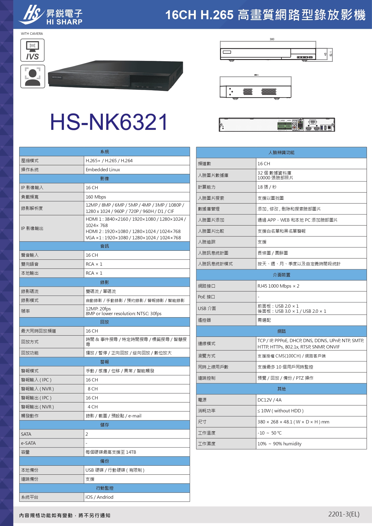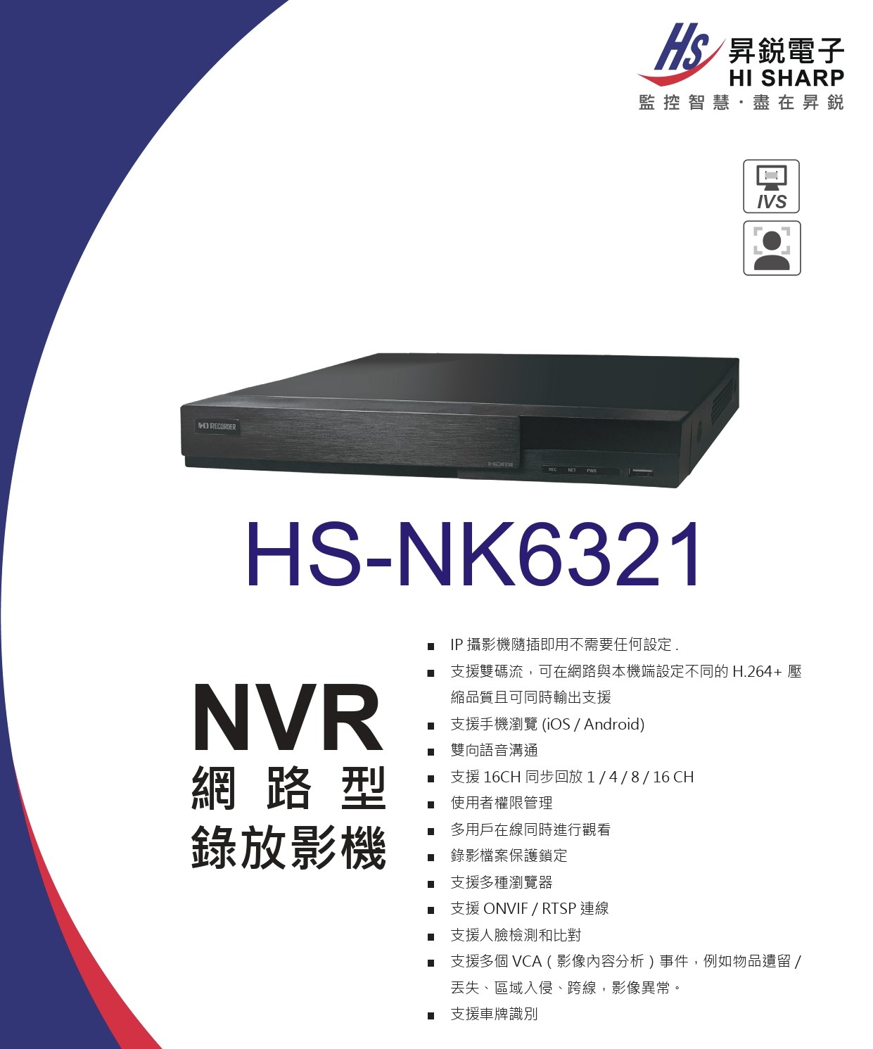 專案限量HS-NK6321 NK6321 昇銳Hi - Sharp HS - NK6321 16CH 4K NVR網路錄影主機
