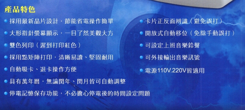 站上人數:15人最新消息: | SUNNINGWAY打卡鐘-->VERTEX TR-970 六欄位大型液晶打卡鐘