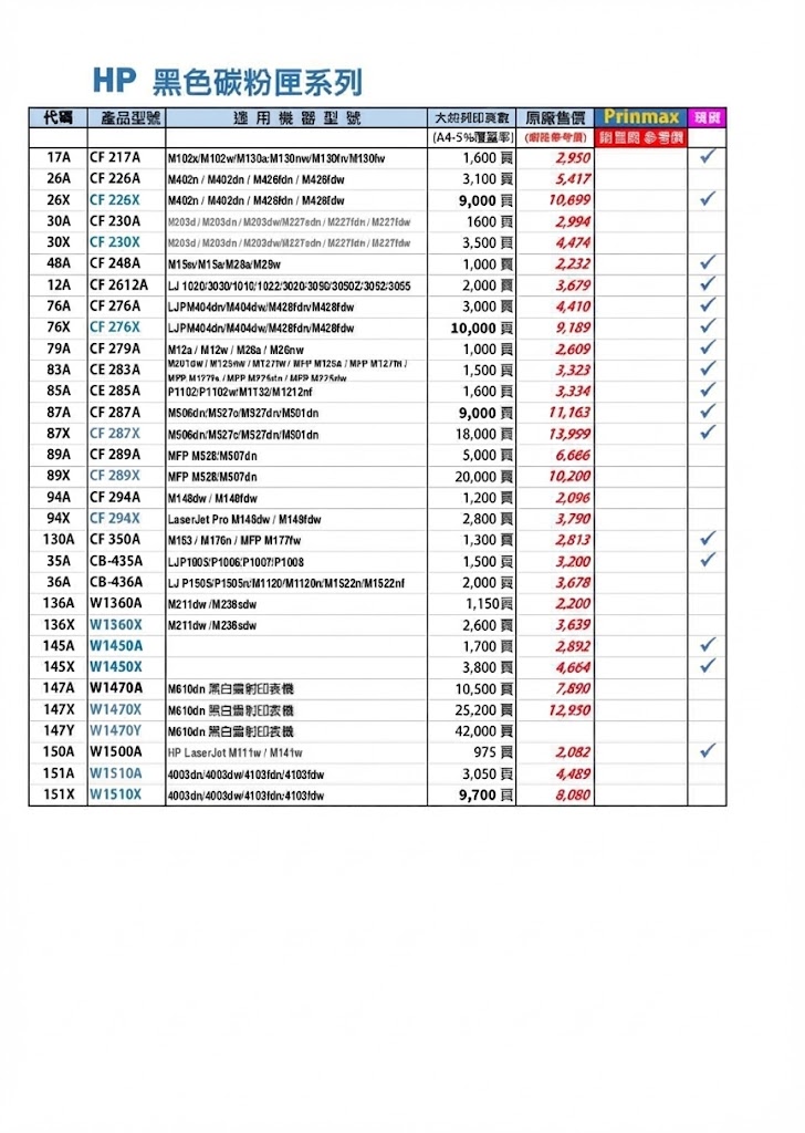 型號:150A W1500A HP LaserJet M111w / M141w 975 頁
