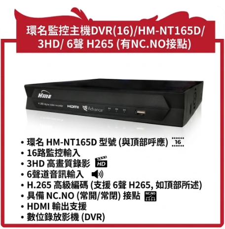 專案限量環名監控主機DVR(8)/HM-NT85D/ 2HD/ 4聲 H265 (有NC.NO接點)